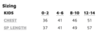 Size | 2 | 4 | 6 | 8 | 10 | 12 | 14 |